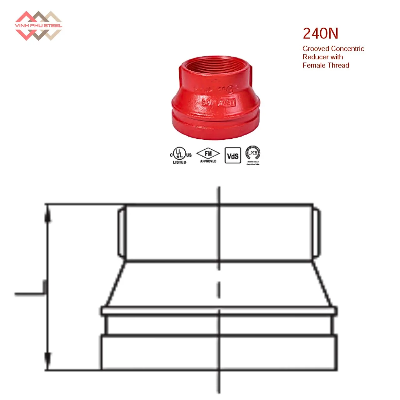 Bầu Giảm Nối Ren Rãnh MECH (Grooved Concentric Reducer With Female Thread) ra đời nhằm đáp ứng nhu cầu này, là phụ kiện giảm ống cao cấp với thiết kế đồng tâm, kết hợp nối rãnh nhanh và ren tiêu chuẩn, mang đến giải pháp lắp đặt nhanh chóng, an toàn và bền bỉ.