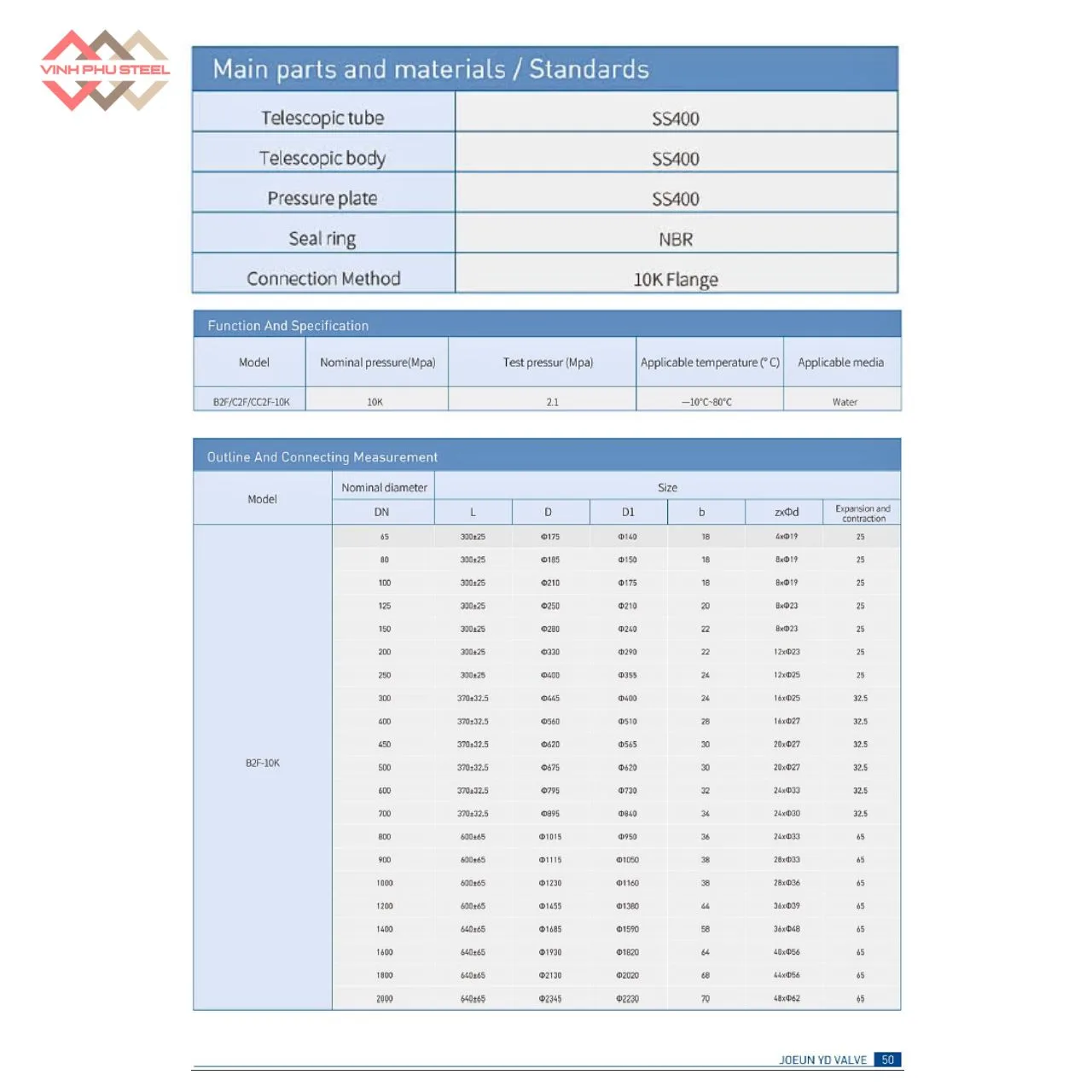 Thông Số Kỹ Thuật Khớp Giãn Nở Joeun Korea – Hàn Quốc