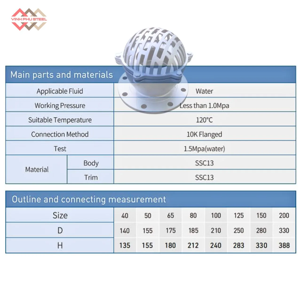 Thiết kế kết nối mặt bích tiêu chuẩn giúp lắp đặt chắc chắn, đảm bảo độ kín và ổn định trong quá trình sử dụng. Lưới lọc inox tích hợp giúp ngăn rác, bảo vệ máy bơm và giảm chi phí bảo trì. Sản phẩm có đầy đủ CO–CQ, nguồn hàng ổn định và giá cạnh tranh, phù hợp để Thép Vinh Phú bổ sung vào danh mục van công nghiệp – vật tư đường ống.