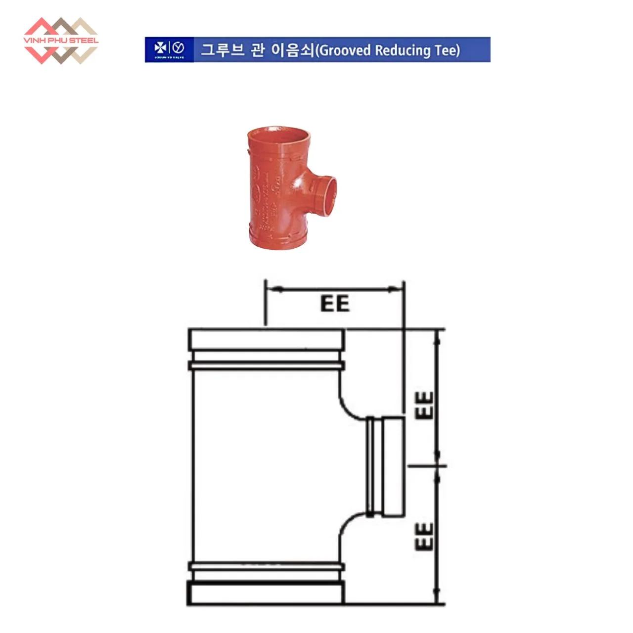 - Cấu Tạo Tê Giảm Nối Rãnh Joeun Koera (Grooved Reducing Tee)