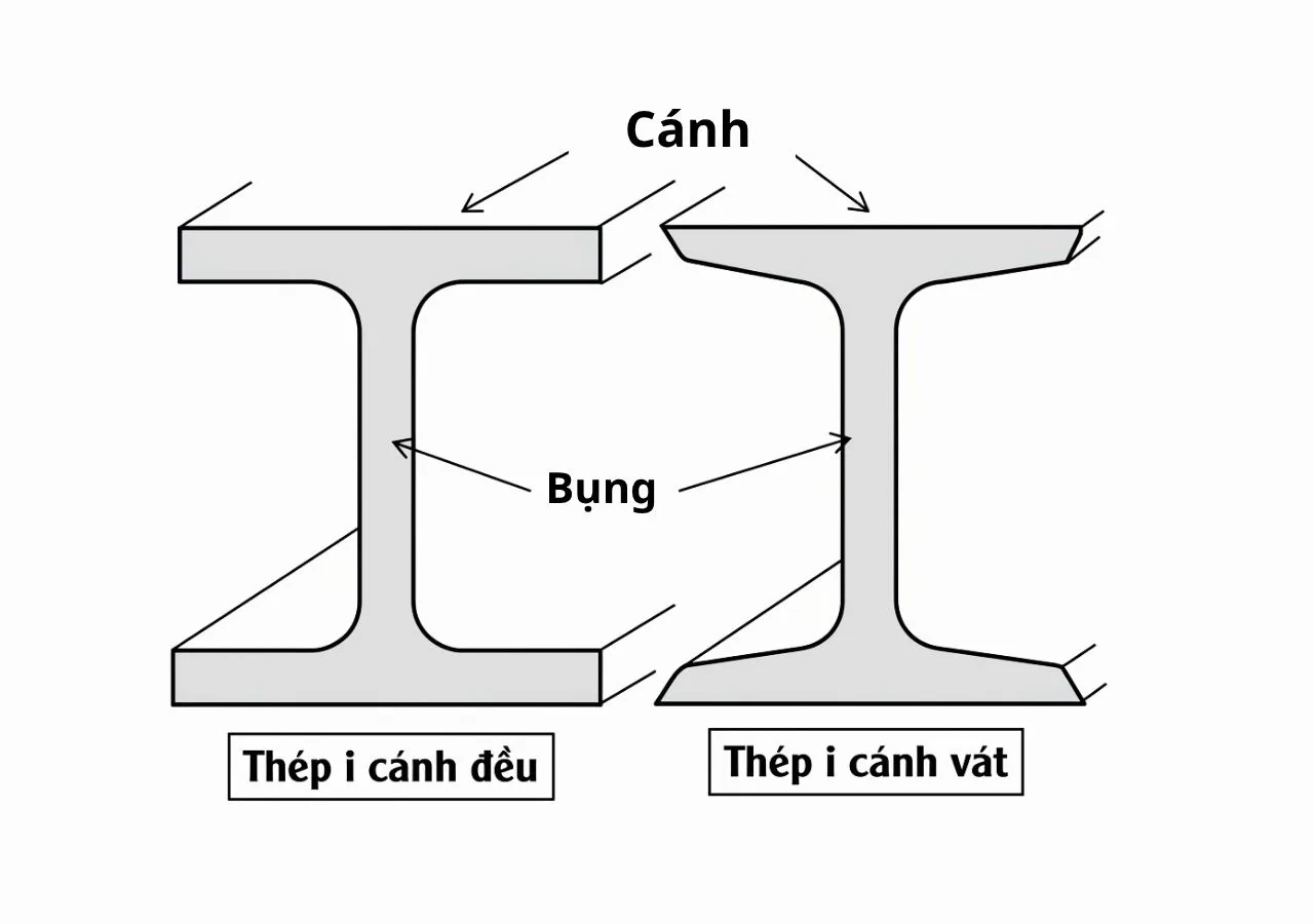 | Hình dạng | Dạng chữ I, cánh hẹp | Dạng chữ H, cánh rộng |