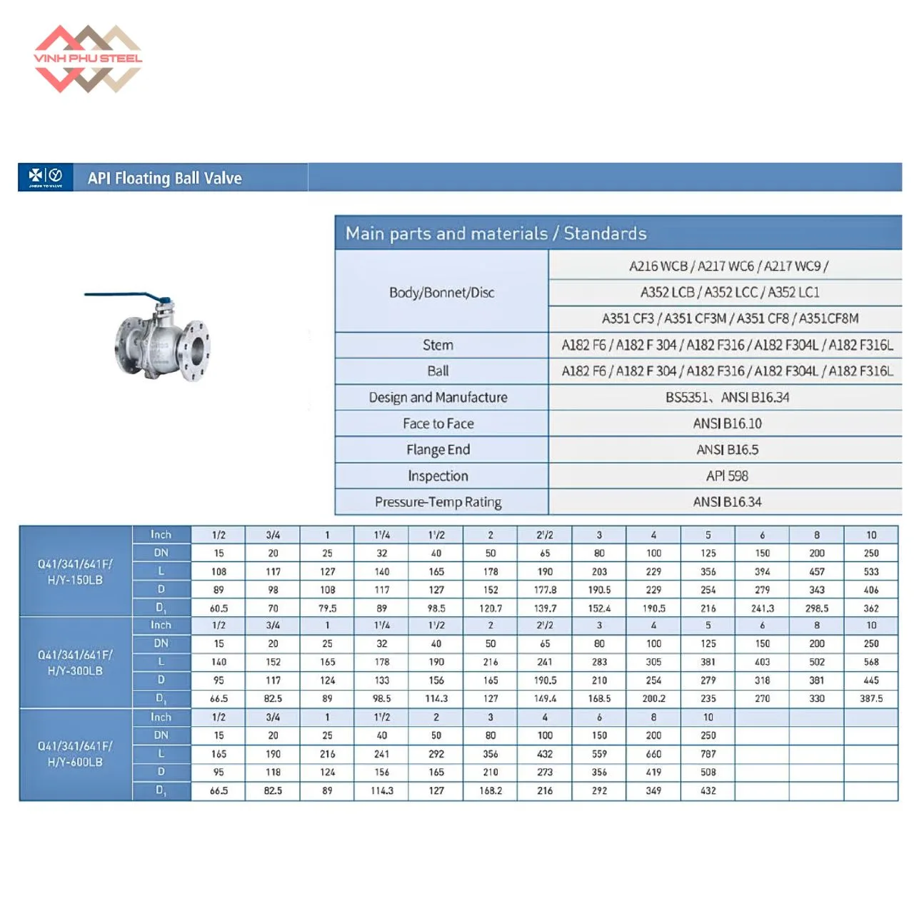 - Kiểu van: Van Bi Nổi tiêu chuẩn API