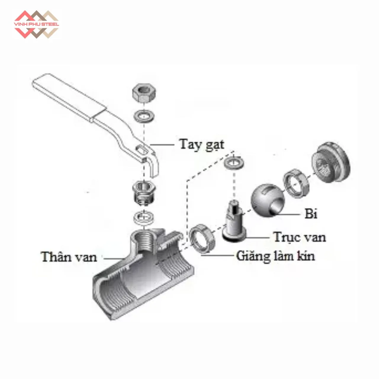 - Là bộ phận liên kết giữa tay gạt và bi van.