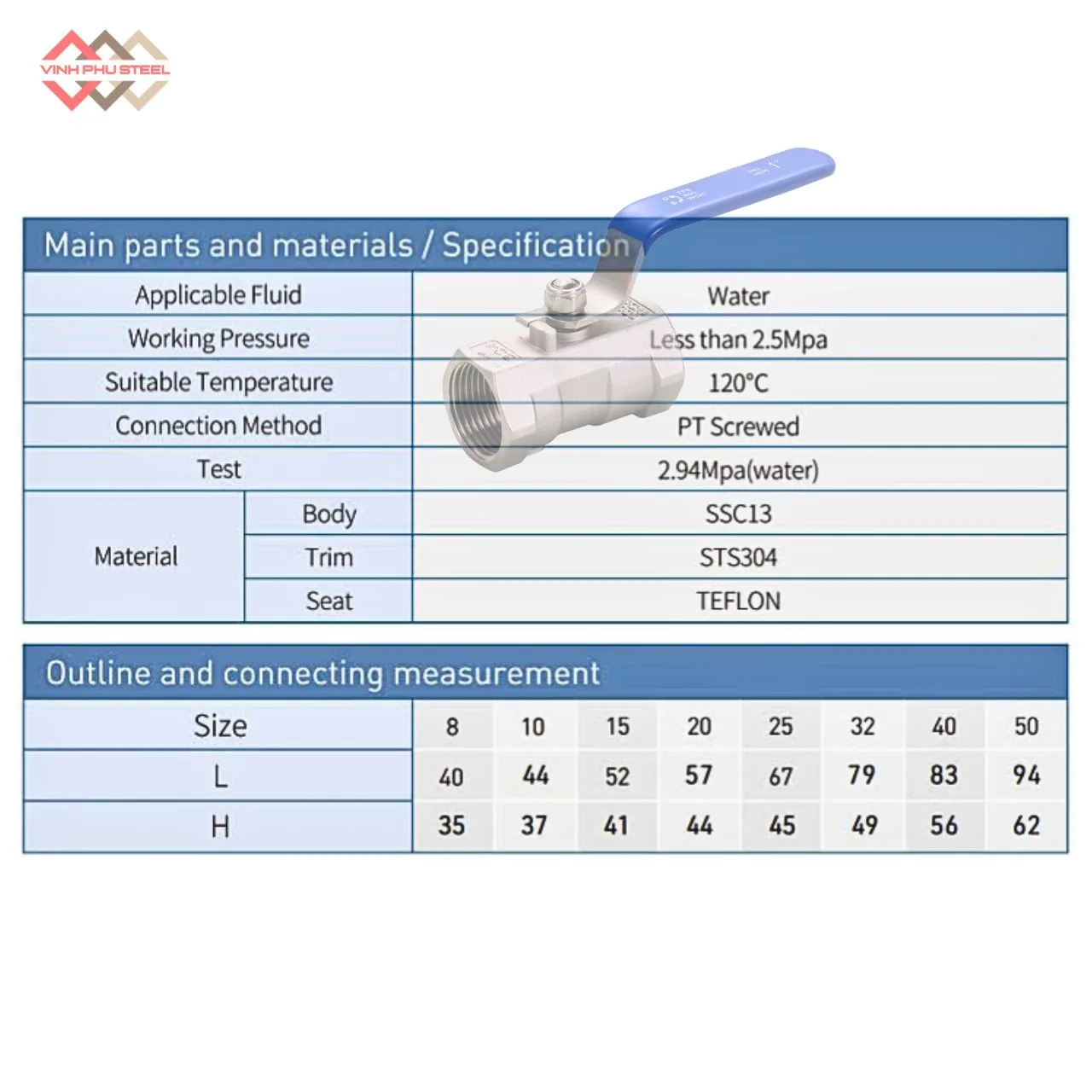 Thông số kỹ thuật Van Bi Inox Nối Ren: