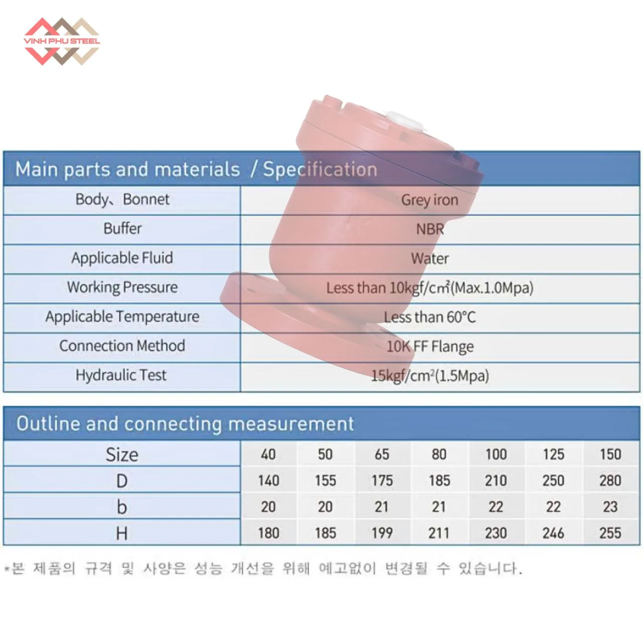 - Thông Số Van Búa Nước Mặt Bích Joeun Korea