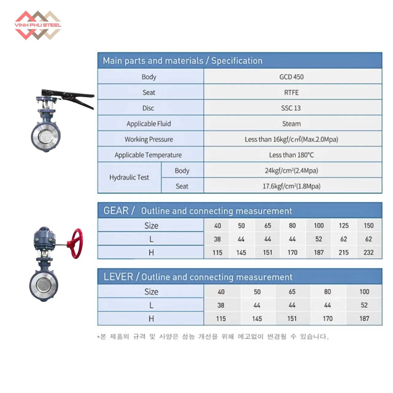 Các sản phẩm do Thép Vinh Phú cung cấp đều có nguồn gốc xuất xứ rõ ràng, đầy đủ chứng từ CO–CQ, được kiểm tra kỹ lưỡng trước khi bàn giao. Van bướm gang dạng wafer Joeun Korea nổi bật với độ bền cao, độ kín tốt, vận hành ổn định và phù hợp với nhiều tiêu chuẩn lắp đặt phổ biến hiện nay.