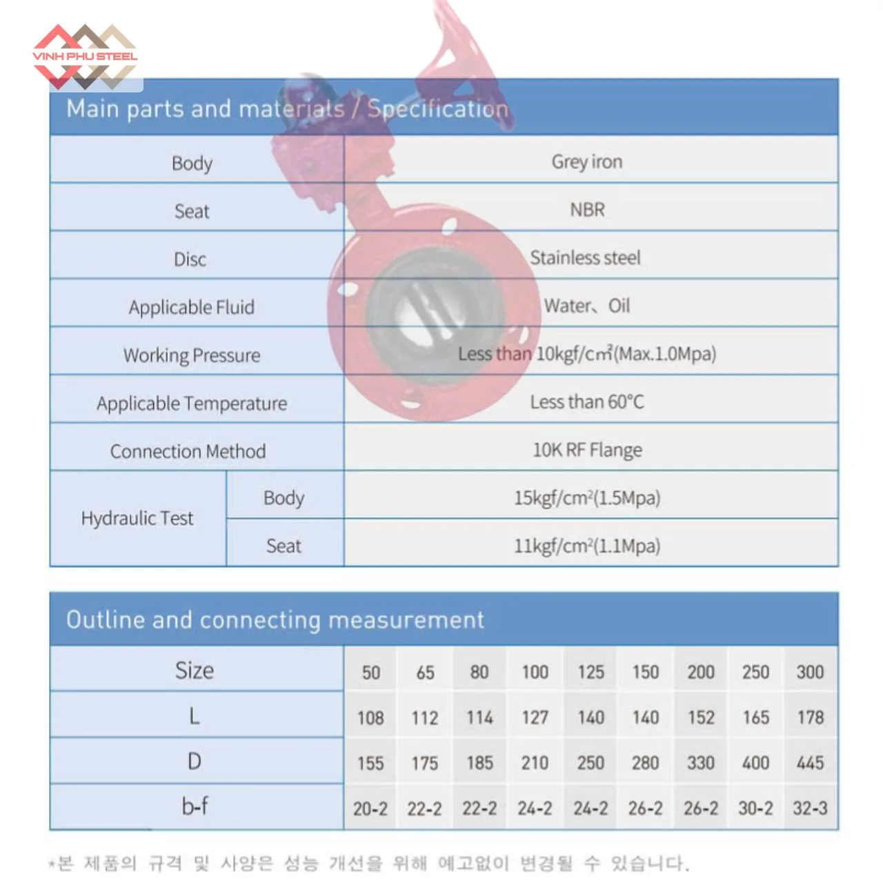 - Thông Số Van Bướm Gang Mặt Bích Joeun Korea