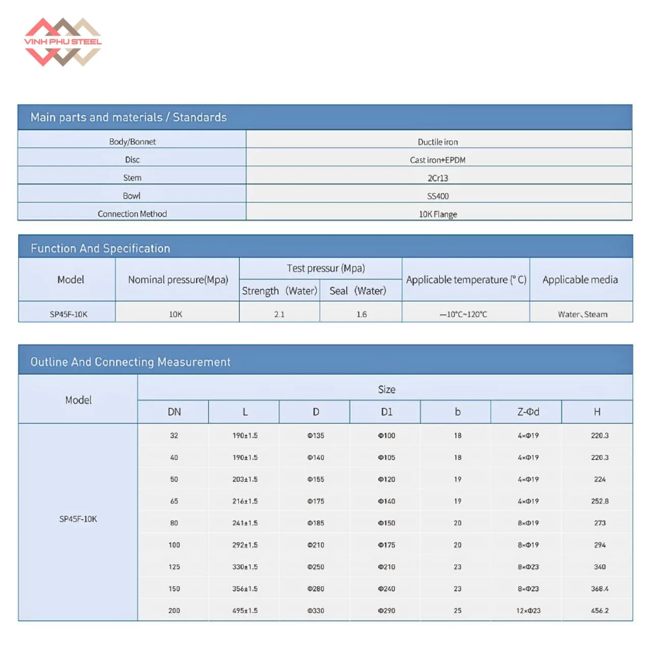 Thông số kỹ thuật chính của thiết bị Van cân bằng Hàn Quốc SP45-10K: