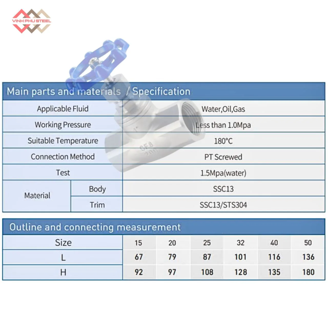 - Kích thước van: DN15 – DN50.