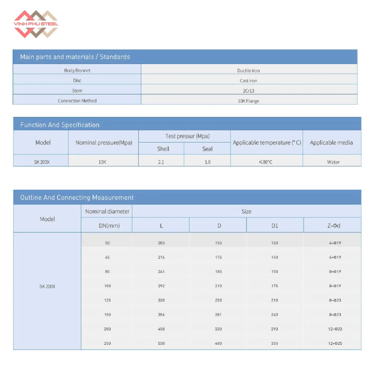 - Đường kính danh nghĩa (DN): DN 50 – DN 250