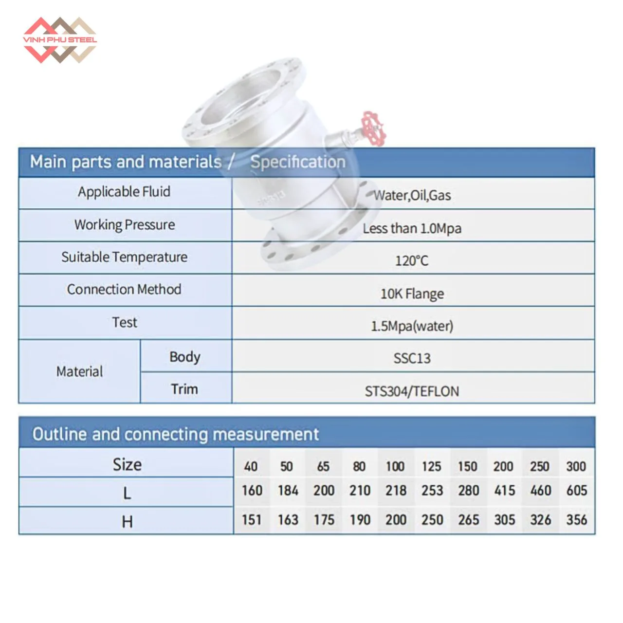 Van Một Chiều Chống Ồn Có Tay Cầm là loại van một chiều được làm bằng inox, thiết kế để ngăn dòng chảy ngược và giảm tiếng ồn trong hệ thống đường ống. Van vận hành dựa trên cơ chế cánh van tự động đóng khi dòng chảy ngược, kết hợp với cơ chế giảm chấn giúp đóng van êm ái, hạn chế hiện tượng búa nước. Tay cầm tròn tích hợp trên van giúp thao tác kiểm tra, mở/đóng và bảo dưỡng dễ dàng. Sản phẩm thích hợp cho các hệ thống nước sạch, nước thải, hơi, khí nén và dầu, nơi cần bảo vệ thiết bị và vận hành êm ái.