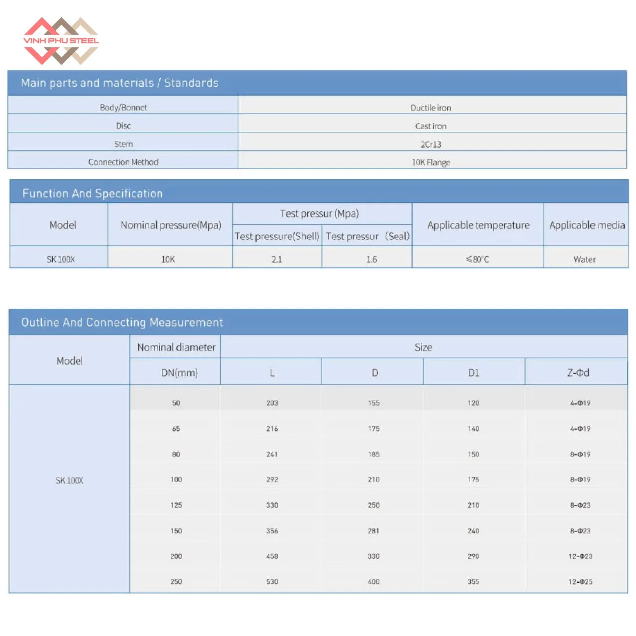 - Kích thước: DN50 – DN250