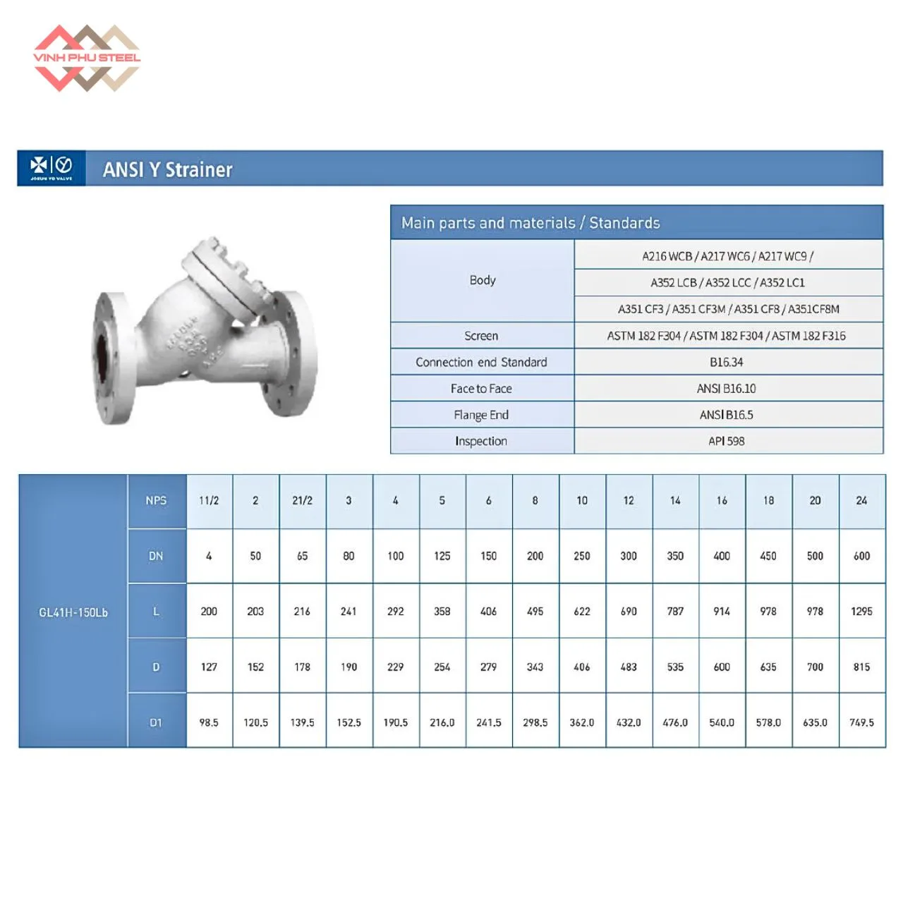Sản phẩm đạt tiêu chuẩn ANSI, kết nối nối bích, phù hợp cho nhiều môi trường làm việc có áp suất và nhiệt độ cao, từ xử lý nước, hơi nóng đến hệ thống đường ống dầu khí. Đây là lựa chọn tối ưu cho doanh nghiệp cần một bộ lọc chữ Y bền bỉ, chính xác và hoạt động tin cậy lâu dài.